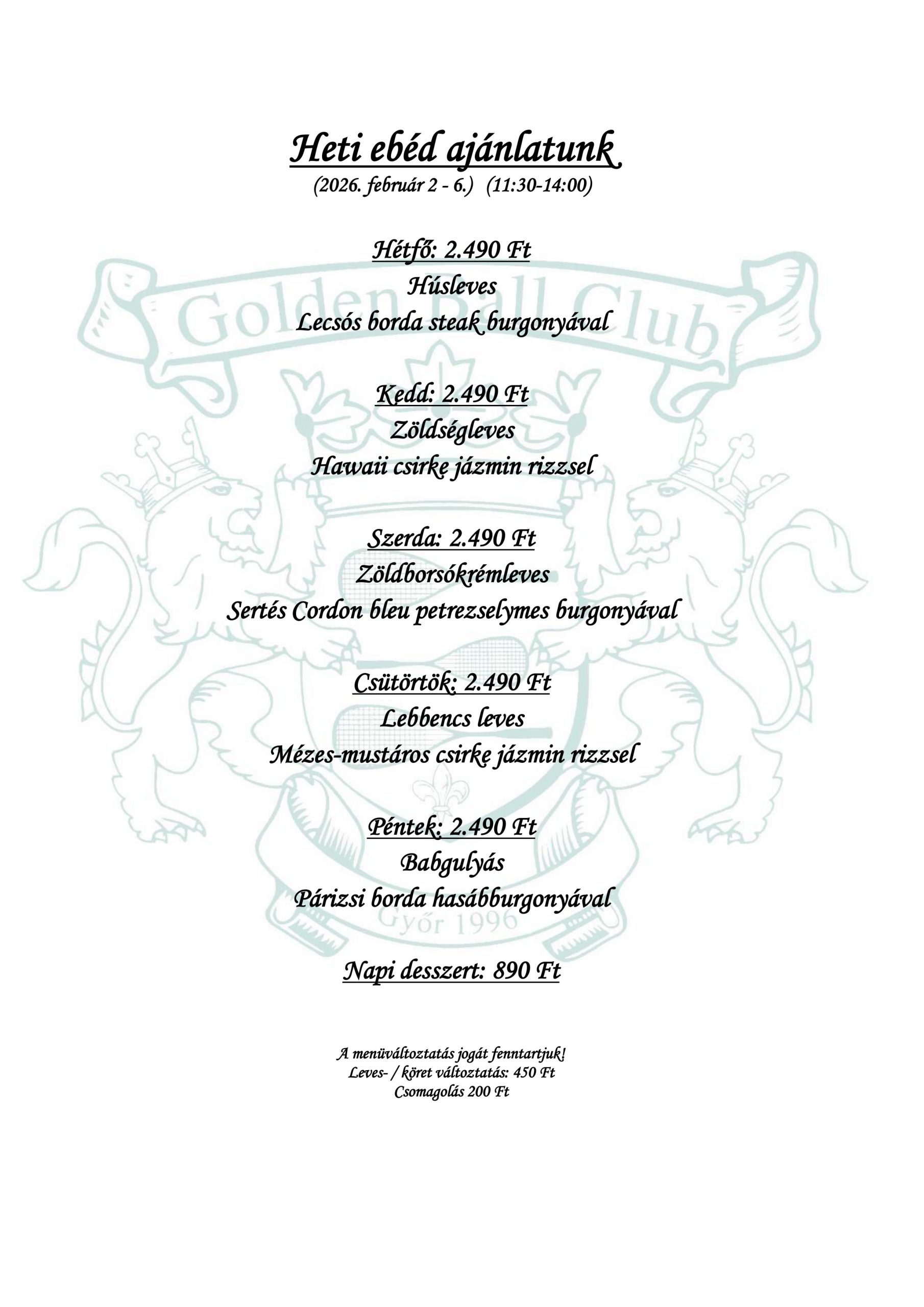 Nyitólap » Étterem » Heti ajánlat